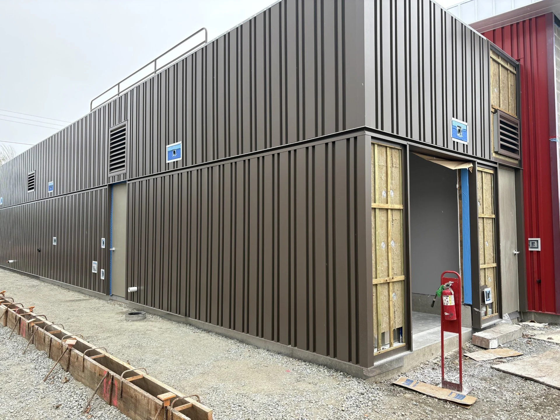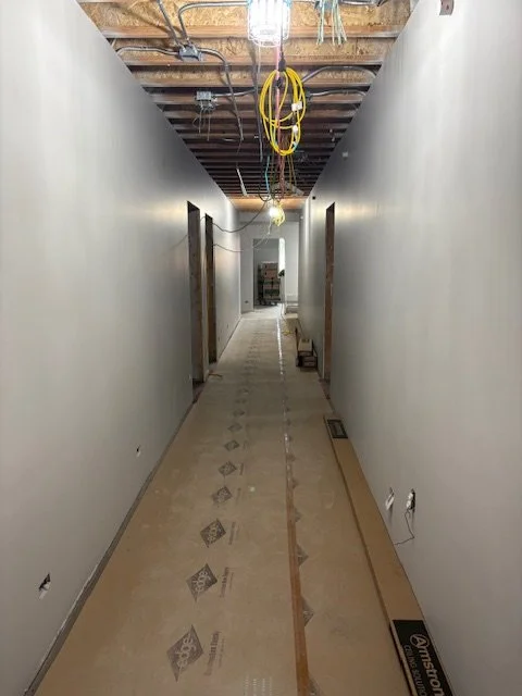 Exterior construction is also advancing. Crews are preparing to pour concrete for sidewalks and the apparatus bay approach, while installation of exterior siding continues around the structure.