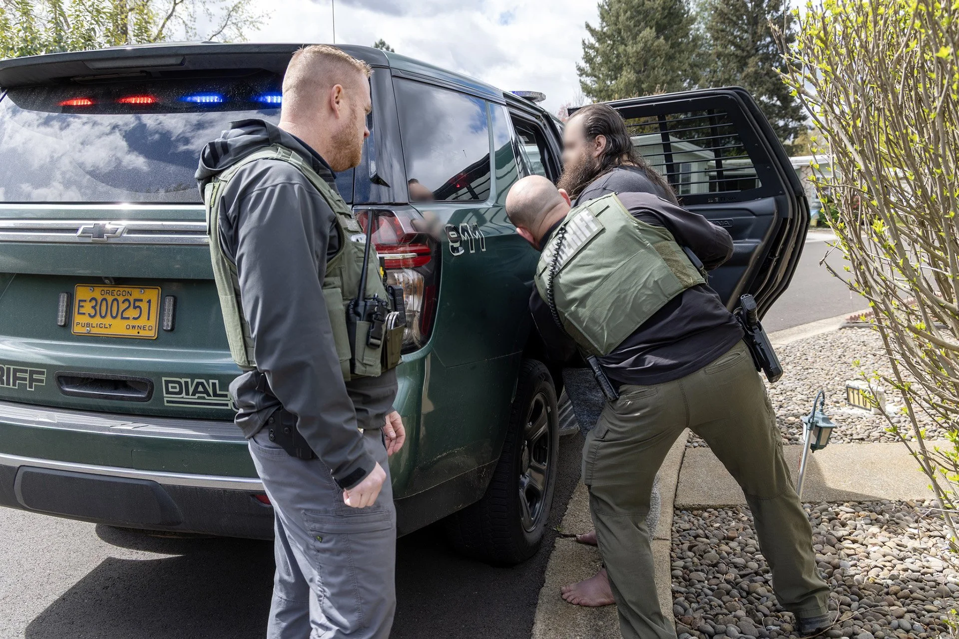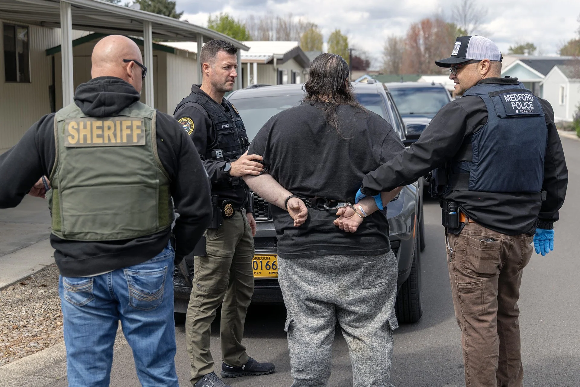 Multiple agencies assisted at the scene, including the Oregon Department of Justice Internet Crimes Against Children Task Force, Medford Police Department, and Homeland Security Investigations.