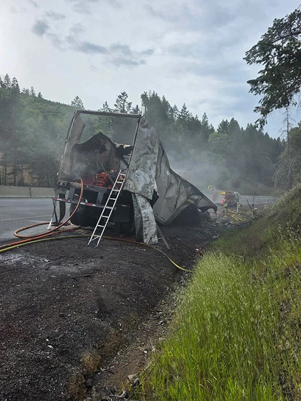 Semi Truck Fire Triggers Explosions on I-5 Near Sunny Valley