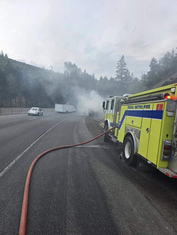 SUNNY VALLEY, Ore. — A semi truck fire along Interstate 5 near milepost 74 northbound at Smith Hill Summit prompted a multi-agency emergency response Sunday afternoon, according to Rural Metro Fire.