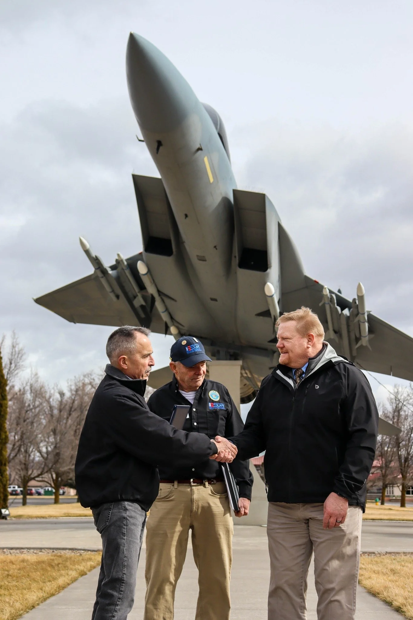 Also attending the ceremony were John Troike, ESGR outreach volunteer and retired Naval Air service member, and Jim Cunningham, ESGR outreach volunteer, retired pilot and Air National Guard general.