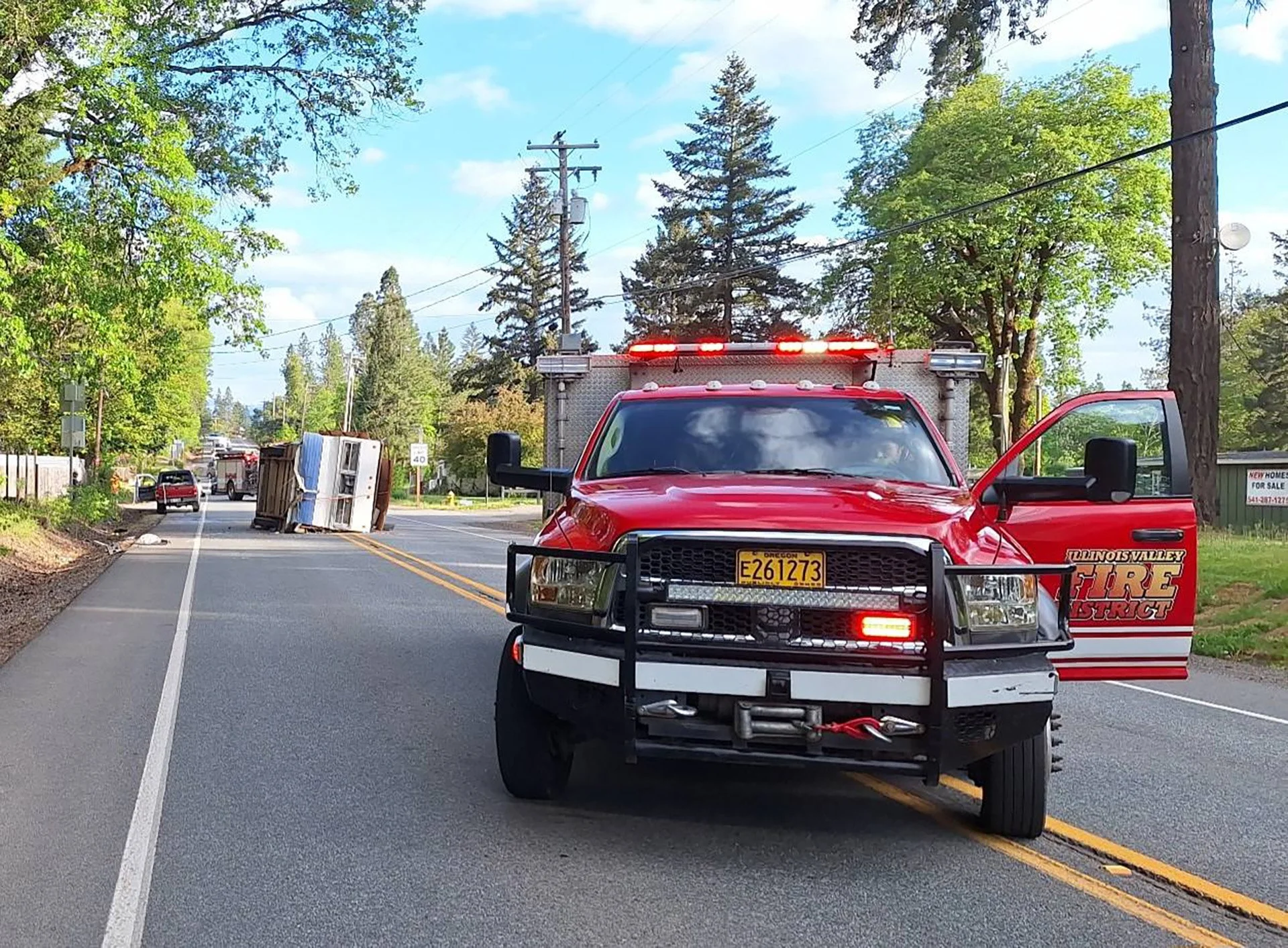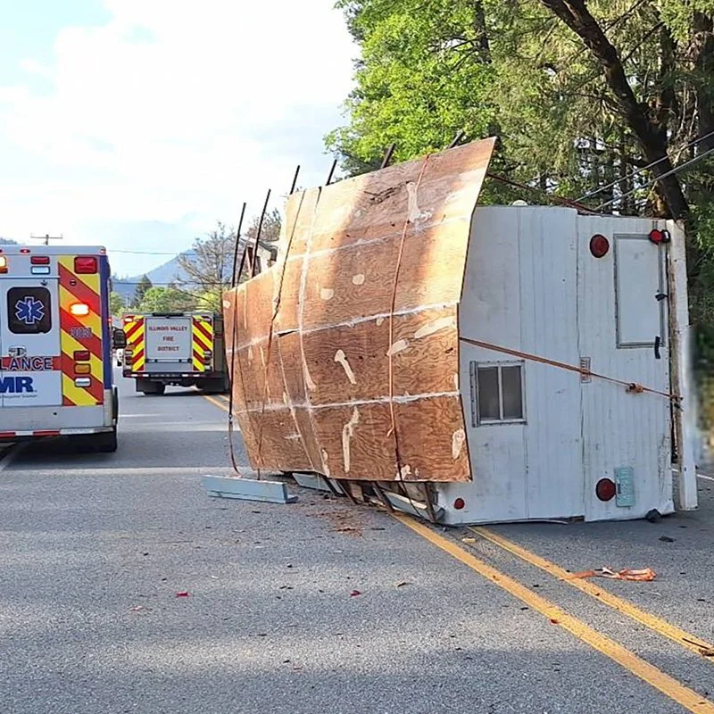 On the evening of April 26, responders were called to a traffic crash near milepost 27 at the intersection of Redwood Highway and Pugetville Road. According to the Illinois Valley Fire District, crews arrived to find a vehicle in a ditch with an unattached trailer that had overturned and was blocking the roadway.